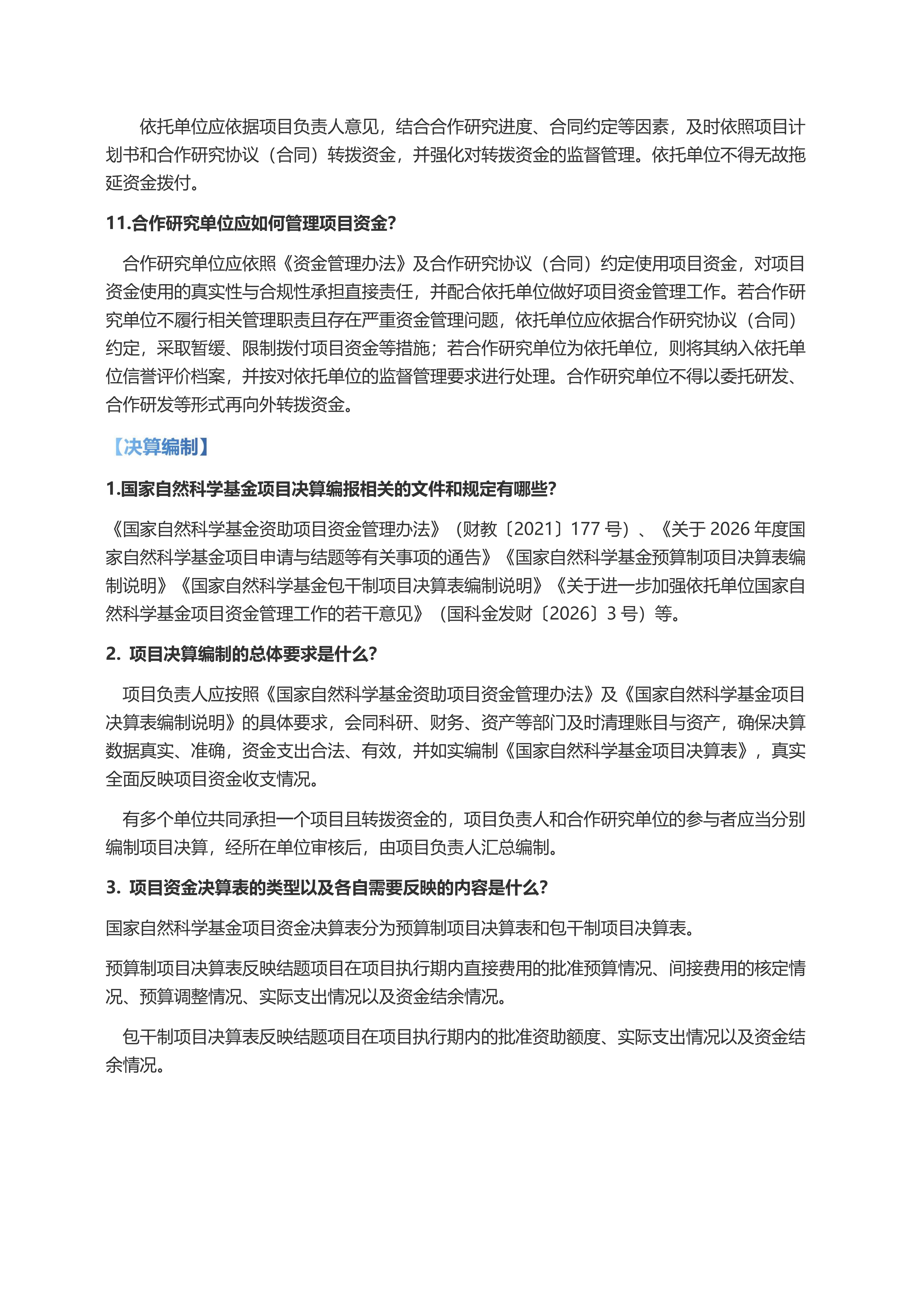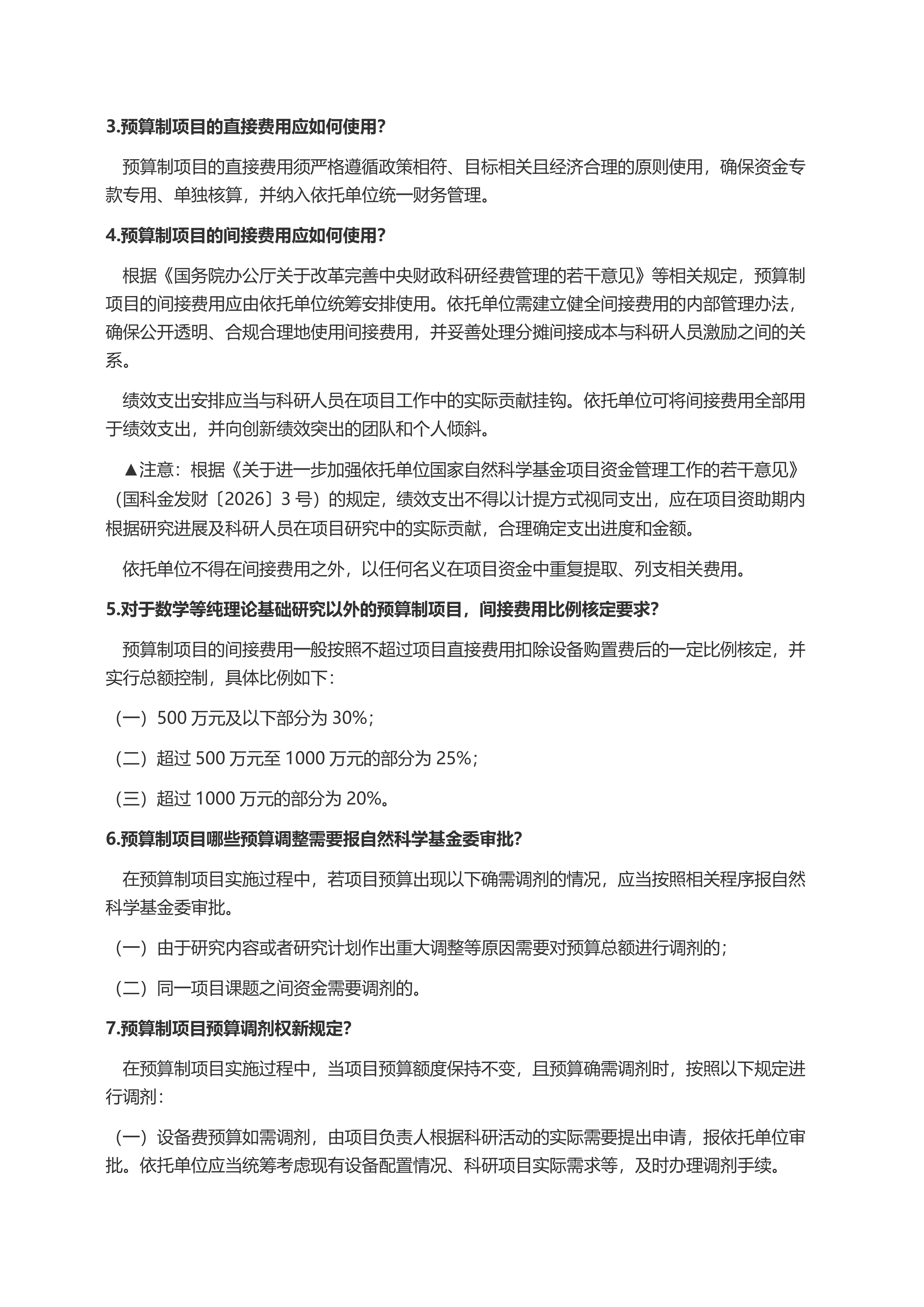 国家自然科学基金项自经费管理常见问答 (2026年)
